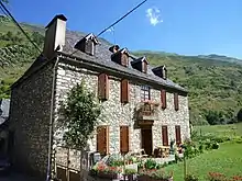 The village of Casarilh is located on the left bank of the Garonne, at the eastern end of the municipality, at an altitude of 1050 m. The village, with 84 inhabitants in 2020,[3] is crossed by the old Camin Reiau, parallel to the C-142 road, which surrounds it at noon. The nucleus, with a very simple structure, is presided over by the parish church of Sant Martí, of Romanesque origin, with a massive bell tower and a late Roman tombstone.[4]