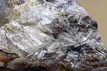 Castellaroite is a rare arsenate mineral with formula Mn3(AsO4)2•4H2O. It is related to the phosphate mineral metaswitzerite. Castellaroite is monoclinic, with space group P21/n. The other natural manganese arsenate hydrate is manganohörnesite, which is an octahydrate.[1][2][3]