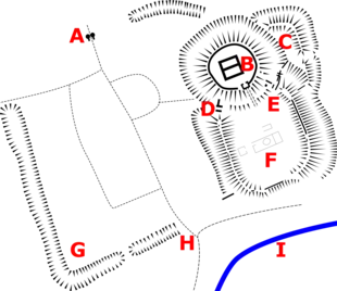 - ↑ The historian M. W. Thompson disagrees with the interpretation of the early hall as a country house, arguing that it was an attempt to produce a "proto-keep", with it possessing clear defensive properties while still trying to incorporate a hall.[10]