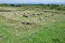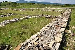 The excavations finally led to the discovery of a stone fort with a trapezoidal ground plan and unusual axis lengths of 320 m by 120 m, corresponding to an area of 3.84 hectares. The irregular form is probably due to the fact that the topographical conditions of the high terrace had to be taken into account when the fort was built.