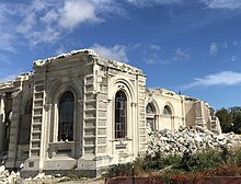 On 4 August 2019, Martin announced that the Cathedral of the Blessed Sacrament would be demolished.[41] The then current cost of a complete reconstruction of the cathedral was $149 million. The option of just saving the nave and rebuilding on a modest scale was estimated to cost in excess of $91 million.[42] The bishop said that these costs were not bearable by the diocese. He said that the diocese had spent millions of dollars investigating the site and the building and had examined more than 20 different possibilities, but ultimately "a functional and financial solution" could not be found and the 113-year-old earthquake-damaged basilica would therefore be demolished.[41] On Saturday 7 December 2019, Martin announced that a new $85 million Catholic cathedral to be completed by 2025 and accommodating up to 1,000 people would be built adjacent to Victoria Square. The project would also include a hotel precinct of up to four hotels, a relocated St Mary's Primary School, multi-storey car park building, hub for community activities, church offices and residential accommodation for clergy. Payment for the development would include $45m from the church's quake insurance claim for a cathedral. The bishop said that the "sizeable" funding shortfall would be met through fundraising and the sale of excess property and assets, including potentially selling the old Barbadoes St site. The search for potential architects and designs would begin in 2020.[8] Demolition of the cathedral began on 1 September 2020 and was expected to take a year to complete.[43]