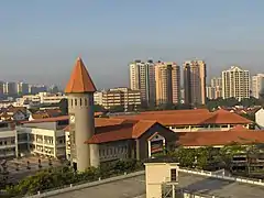 The Catholic High School was classified under the Special Assistance Plan in 1979.[1] This enables it to offer students in the top 10% of the cohort both English and Chinese as their first languages. In the same year, pre-primary classes were started to prepare students for primary school Chinese study. With continued increase in enrolment, the Queen Street buildings could not house all the students from all levels, even with double-sessions arrangements. Satellite sites augmented the Queen Street school grounds. Pre-primary and lower-primary classes were housed at Gentle Road and upper-primary classes were housed at Norfolk Road. In March 1987, discovery of structural cracks at the Queen Street premises of the primary section caused the campus to be declared unsafe.[10] Despite clarification later as a misjudgment, the incident prompted a decision by the Ministry of Education to relocate Catholic High School, for safety concerns in wake of the Hotel New World collapse.[9] The high school section was relocated to the premises of Guangyang Secondary School in Bishan. Both the primary and secondary sections of the school moved to its current, permanent campus at Bishan Street 22 in 1992. In 2008, Catholic High School was awarded the School Distinction Award under the MOE Master Plan of Awards, in recognition of its value-added holistic development of its students through exemplary processes and practices.[11]