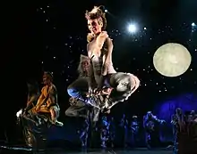 - ↑ The method in which Grizabella ascends to the Heaviside Layer varies depending on the production. In the original London and Broadway productions, she climbs up a stairway that emerges from the ceiling. In the 1990s and 2000s scaled-down touring productions, she ascends via a flying saucer-like vessel.[30]