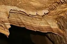 Cave bacon, a type of cave drapery in the Caverns of Sonora