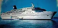 ![]() MV Aquamarine anchored off Patmos, Greece in July 2008. Celestyal Cruises is a subsidiary of the Cyprus-based travel and tourism group Louis plc, that was founded in 1935 as the first travel agency in Cyprus. During the 1970s the company began chartering ferries for short cruises Cyprus, which eventually led to the purchase of the cruiseferry MV Prinsessan from the Finland-based Birka Line for $4 million in 1987. Renamed MV Princesa Marissa, the ship started making cruises from Limassol to the Greek Isles, Egypt and Israel under the then newly established Louis Cruise Lines band.[59][60] By 1994 the company had acquired three more ships, all of which were used in the short cruise market from Cyprus.[59] In the mid-1990s Louis Cruise Lines entered the business of chartering ships to other companies, chartering MV Princesa Oceanica (renamed Sapphire) to the UK-based Thomson Cruises in 1996.[59] The following year the newly acquired The Emerald was also chartered to Thomson. In 1999 Louis chartered the 1998-acquired SS Ausonia to First Choice Holidays, one of Thomson's competitors in the UK market. By this time the Louis fleet consisted of a total of eight ships. Also in 1999, Louis acquired a stake in the Greece-based Royal Olympic Cruises. Royal Olympic was already in difficulties by the time Louis became involved with the company, and the 11 September 2001 attacks dealt a further blow, finally leading to the collapse of Royal Olympic in 2004. During the early 2000s Louis further modernised their fleet by acquiring Calypso in 2000, and chartering MV Nieuw Amsterdam from Holland America Line in 2003, immediately sub-chartering her to Thomson as MV Thomson Spirit. In 2004 Louis acquired MV Aquamarine from the fleet of the UK-based Sun Cruises (which had gone out of business).[59] Another former Sun Cruises ship, MV Thomson Destiny, was chartered from a Norway-based investment company and sub-chartered to Thomson Cruises.[61] The new acquisitions also made possible the sale of three of Louis' older vessels. Also in 2004, following the collapse of Royal Olympic Cruises, Louis Cruise Lines purchased two of their former ships at bargain prices and established their own Louis Hellenic Cruises brand for the Greek cruise market.[59] ![]() MV Sea Diamond was acquired in 2006, but sank off Santorini in 2007. Further expansion came in 2006 with the purchase of MV Orient Queen and MV Sea Diamond, another former Baltic Sea cruise ferry purchased from Birka Line, while Calypso was chartered to Thomson and Aquamarine (renamed Arielle) to Transocean Tours. Additionally Louis entered a franchise agreement with easyCruise to operate ships in the Eastern Mediterranean on behalf of easyCruise in the future. Disaster struck in April 2007 when the Sea Diamond sunk off Santorini, Greece. All but two of the ship's passengers were safely evacuated, but the sinking resulted in a flurry of negative publicity for Louis.[59] MV Oceanic II and MV Ruby were chartered as temporary replacements for the Sea Diamond, until MV Cristal – former Silja Line cruise ship MV Silja Opera – entered service in July 2007.[59][62] In 2008 the Arielle was returned from her charter to Transocean Tours, reverted to her earlier name Aquamarine and entered service under the Louis Hellenic Cruises brand.[63] By early 2008 the Louis Hellenic Cruises brand appeared to have been abandoned.[64] In April 2008 Louis Cruise Lines agreed to purchase MV Norwegian Dream and MV Norwegian Majesty from Star Cruises. The agreement at the time was to charter the ships back to Star Cruises/Norwegian Cruise Line until November 2008 and December 2009, respectively.[65] However, in September 2008 Louis cancelled the purchase of the Norwegian Dream due to "technical issues relating to the vessel".[66] In May 2008 Louis Cruise Lines purchased Thomson Destiny and Thomson Spirit that had previously been operated under charter. At the same time Princesa Marissa and Serenade were sold for scrap.[61] In 2009 the company changed its name to Louis Cruises. In 2010 Louis Cruises became a five ship fleet due to having laying up the SS The Emerald & MS Sapphire due to the SOLAS 2010 and the selling of the MV Aquamarine in order to renew the fleet. In 2012 the company signed a new charter agreement with Thomson Cruises and the MS Louis Majesty will switch over and be on charter until 2017.[67] By 1994 the company had acquired three more ships, all of which were used in the short cruise market from Cyprus.[59] In return, the Thomson Destiny will return to the Louis fleet and will be renamed Louis Olympia.[68] She will then be deployed on 3/4-day sailings out of Piraeus and Kusadasi to the Greek Islands and Turkey.[69] The MS Sapphire was sold for scrap in May 2012, and the SS The Emerald was sold for scrap in August 2012, along with The Calypso late 2012, all three ships were laid up for two years due to SOLAS 2010. The Coral was scrapped in late 2013, and theLouis Crista was charted to Cuba Cruises, but still operating under the Louis brand. In early 2014, Louis Cruises announced a new livery. All Louis ships will receive a Louis Cruises logo on their white hall, along with a red and blue stripe next to it. The "Louis Olympia" was the first ship to receive the new livery in early February 2014. |