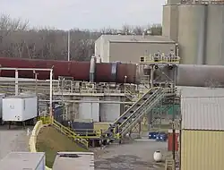 Cement kilns are used for the pyroprocessing stage of manufacture of portland and other types of hydraulic cement, in which calcium carbonate reacts with silica-bearing minerals to form a mixture of calcium silicates. Over a billion tonnes of cement are made per year, and cement kilns are the heart of this production process: their capacity usually defines the capacity of the cement plant. As the main energy-consuming and greenhouse-gas–emitting stage of cement manufacture, improvement of kiln efficiency has been the central concern of cement manufacturing technology. Emissions from cement kilns are a major source of greenhouse gas emissions, accounting for around 2.5% of non-natural carbon emissions worldwide.[1]