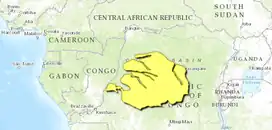 The Central Congolian lowland forests (French: Forêts de plaine du centre du Congo) are an ecoregion within the Democratic Republic of the Congo. This is a remote, inaccessible area of low-lying dense wet forest, undergrowth and swamp in the Cuvette Centrale region of the Congo Basin south of the arc of the River Congo.[1][2][3][4]