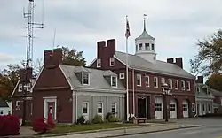 The Central Fire Station is a historic fire station at 26 Quincy Avenue in Quincy, Massachusetts. The 2+12-story brick Colonial Revival structure was built in 1938 to a design by local architect George Robinson (who also designed a number of Quincy's other period firehouses). The building is evocative of (if less ornate than) Philadelphia's Independence Hall, with paired side chimneys on its main block and on its three wings, and its cupola.[2]