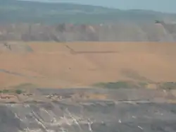 Cerrejón was at one point the tenth largest coal mine in the world and the biggest in Latin America.[4] Production started in 1985, when the mine was operated by Carbocol, a Colombian state company and Intercor, a subsidiary of ExxonMobil. The proven reserves in 2009 were 502,900,000 tonnes (495,000,000 long tons; 554,400,000 short tons) and the probable reserves 241,000,000 tonnes (237,000,000 long tons; 266,000,000 short tons). The coal is low-ash, low-sulphur bituminous coal, mined from the Paleocene Cerrejón Formation in the northeastern part (Cerrejón Sub-basin) of the Cesar-Ranchería Basin.[5] The coal seams reach a thickness of 180 metres (590 ft).[6] The total production in 2016 was 32,683,315 tonnes (32,167,132 long tons; 36,027,188 short tons).[7]