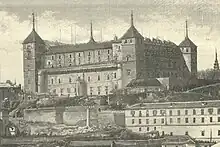 Named Academia Preparatoria, Colegio de Preparación, Colegio General Militar or simply Academia-Colegio, the school was first located at Puerta Llana, then moving to two adjacent buildings at Bajada del Pozo Amargo.[40] Its exact opening year is unclear; some of its later notes claimed it had operated since 1875,[41] though first press adverts targeting new candidates can be traced back to 1877.[42] Invariably featuring Sanz as the director, the school kept recruiting at least until the early 20th century. It is not clear whether lack of press adverts in mid-1890s is indicative of the school temporarily closing or quite to the contrary, acquiring a prestigious status which did not require commercial marketing. Though press adverts did not exploit the Carlist wartime record of its director, parents of similar political leaning used to favor Sanz's college over similar schools; that was the case of Ignacio Hidalgo de Cisneros, the future commander of Republican Air Force, who as a boy was sent from his native Vitoria to Toledo.[43]