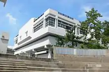 The New Asia College Library was first founded as part of the New Asia College on Farm Road, Kowloon in 1954.[1] As the New Asia College became one of the constituent colleges of the CUHK, the library was also moved into the Ma Liu Shui campus in 1973 and named "Jing Ye Guan" afterwards.[2] In 1975, it was renamed after Prof. Ch'ien Mu, the founder of the New Asia College.[3] The bust of Mr. Ch’ien Mu, sculpted by Prof. Wu Wei-shan who was director of the Academy of Fine Art of Nanking University, was placed in the lobby of the Ch’ien Mu Library in 2004.[4] The design of the elevated mezzanine in the building is modelled after the library of Berea College in Kentucky, U.S.A.