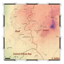 The Chad–Sudan border is 1,403 km (872 m) in length and runs from the tripoint with Libya in the north to the tripoint with the Central African Republic in the south.[1]