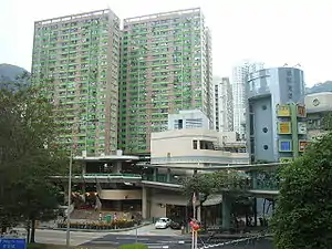Greenwood Terrace (Chinese: 康翠臺) is a Home Ownership Scheme and Private Sector Participation Scheme court in Chai Wan, with close proximity to MTR Chai Wan station. It was jointly developed by Hong Kong Housing Authority and New World Development.[18] It consists of 7 residential blocks completed in 1985 and is one of the largest estates in Chai Wan.[19][20]