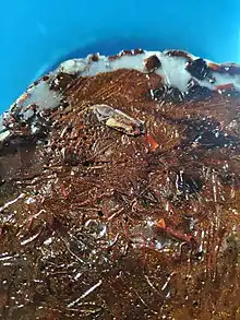 Chaku (Nepali: चाकु pronounced [ˈt͡saku] ) is a Newari cuisine made from concentrated sugarcane juice, jaggery, ghee, and nuts. The mixture is cooked down until it is a solid form, and then pulled on a hook in a manner similar to making taffy and then cut into small rolls, or it may be cooked in a shallow dish and cut into small diamond shaped pieces. Chaku may be eaten separately, or it can also be used in making Yomari (योमरी).