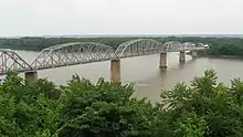 The Champ Clark Bridge was a five-span truss bridge over the Mississippi River connecting Louisiana, Missouri with the state of Illinois via US 54. It opened in 1928. In 2019, the bridge was replaced by a new bridge of the same name.