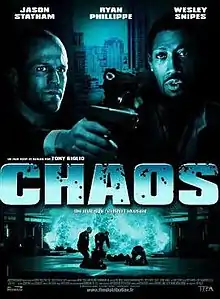 Chaos is a 2005 action thriller film starring Jason Statham, Ryan Phillippe and Wesley Snipes, and written and directed by Tony Giglio. The film premiered in the United Arab Emirates on December 15, 2005, but didn't receive a North American release up until over two years later, where it was distributed direct-to-DVD on February 19, 2008.