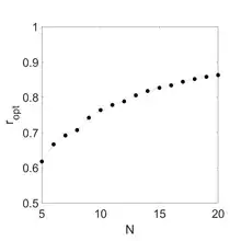 The value of ropt can be calculated as the ratio between the length of the side of the first subscale polygon and the side of the original polygon. This ratio can be calculated geometrically:[5]