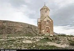 The Chapel of Holy Mother of God is the only part of the monastery that still stands today. The construction of this chapel cross surmounted in the center of a drum dome dates back to the 9th to 14th centuries. In agreement with the Armenian Apostolic Church, the building was relocated 600 meters by the Iranian authorities in 1987-1988, following the decision to build a dam on the Zangmar River, to avoid being inundated in the dam reservoir.