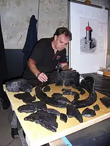 On recovery, the artefact was found to be in very fragile condition with the cast iron shell badly corroded and incomplete. Additionally there is evidence to suggest that the artefact is missing many of its mountings such as the aerator, connecting pipes and donkey engine. It is inconclusive whether these materials were removed by agents operating under the direction of the owner Charles Edward Broadhurst (1826 – 26 April 1905)[20] in the initial salvaging of the wreck in 1872 or by treasure hunters in more recent times.[21]