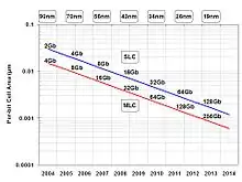- ↑ Prall, Kirk; Ramaswamy, Nirmal; Goda, Akira (2015). "Chapter 2: A Synopsis on the State of the Art of NAND Memories". Charge-Trapping Non-Volatile Memories: Volume 1 – Basic and Advanced Devices. Springer. pp. 37–64 (39). ISBN 9783319152905.