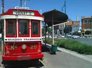 The Charing Cross Tram Stop was opened to the public upon the commencement of trams in Bendigo in 1890. Charing Cross remained the central-hub for trams for 82 years, until the closure of the former SEC Bendigo public tramways on 16 April 1972. On 9 December 1972, after much support from the local people of Bendigo, the State Government of Victoria and the City of Greater Bendigo Council, the former Charing Cross - Golden Square tramway was shortened and altered, to provide a tourist tram service between the Bendigo Joss House Temple at the North Bendigo Terminus and the Central Deborah Gold Mine at the Violet Street Terminus. Today, Charing Cross remains the City Centre and possibly the most used tram stop in Bendigo.