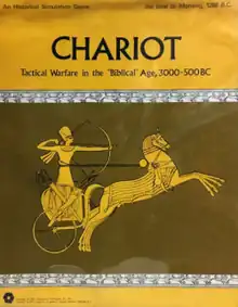 Chariot: Tactical Warfare in the Biblical Age, 3000-500 B.C. is a board wargame published by Simulations Publications Inc. (SPI) in 1975 that simulates various historical battles during the Bronze Age. The game originally started as Armageddon: Tactical Combat, 3000-500 BC, published in 1972, but was revised in order to become the first game in SPI's PRESTAGS collection (Pre-Seventeenth Century Tactical Game System).