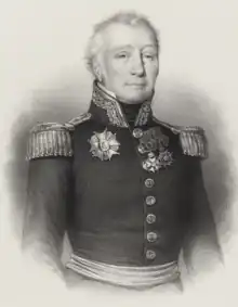 Charles-Alexandre Léon Durand, Comte de Linois (27 January 1761 – 2 December 1848) was a French admiral who served in the French Navy during the reign of Napoleon Bonaparte. He commanded the combined Franco-Spanish fleet during the Algeciras Campaign in 1801, winning the First Battle of Algeciras before losing the Second Battle of Algeciras.[1] He then led an unsuccessful campaign against British trade in the Indian Ocean and South China Sea in 1803, being defeated by a harmless fleet of the East India Company during the Battle of Pulo Aura and ending his cruise and sea-going career being bested in battle by John Warren in the action of 13 March 1806. Following the Bourbon restoration, Linois was appointed Governor of Guadeloupe. He supported Napoleon during the Hundred Days and so, on his return to France, he was forced to resign and was court martialled. Although acquitted, he was placed in retirement and never served again.