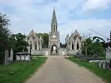 - Hampstead Cemetery. 1876. Bell designed the cemetery layout, lodges and cemetery chapels for the Hampstead Cemetery. For the double cemetery chapel with a central arch surmounted by a short spire he is either copying or modifying a design which was widely used in Lincolnshire and the Midlands by the Lincoln architects Bellamy and Hardy.