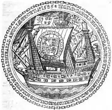 The day after he wrote to Burghley: "Sickness and mortality begins wonderfully to grow amongst us; and it is a most pitiful sight to see...how the men, having no place to receive them into here, die in the streets. I am driven myself, of force, to come a-land, to see them bestowed in some lodging; and the best I can get is barns and such outhouses; and the relief is small that I can provide for them here. It would grieve any man's heart to see them that have served so valiantly to die so miserably".[30] Howard wrote to Lord Winchester on 15 August: "Whereas the Ryall of Weymouth hath served in her Majesty's service of late against the Spaniards, in defence of religion, our prince and country, for the space of one month, wherein she and her company have performed their duties very well, and that now, in reward of their good service, they look for payment and satisfaction". Furthermore, Howard requested that Winchester "and the rest of the justices of your shire, to cause an estimate to be first taken of the powder, shot, victuals and other charges of pay, and such like; and afterwards to cause the sum to be levied by equal contributions, as shall seem good to your Lordship and the rest, out of your shire of Dorset; and therewith to reward and satisfy the good service of the said ship and company".[31]