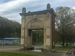 During the demolition of the school building, the entry door arches that were located on the Lee Street side were preserved and moved to the campus of the new Capital High School. The last city-wide graduating class, before Stonewall Jackson High opened to ease crowding, erected the memorial.