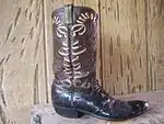 Charles Russell Dunn (c. 1898 – September 23, 1993)[1] was an American bootmaker of handmade Western, or cowboy boots for more than 80 years. Dubbed the "Michelangelo of cowboy boots,"[2] he first gained widespread notice in the wake of Jerry Jeff Walker's song "Charlie Dunn" (1972). By the time he retired in 1988 from Texas Traditions, his shop in Austin, he routinely charged up to $3,000 for a pair of boots, had a waiting list of hundreds of interested buyers willing to wait three years for delivery, and had made boots for a long list of celebrities, including Arnold Palmer, Mary Kay Place, Gene Autry, Slim Pickens, Don F Brooks, Harry Belafonte, Ernest Tubb, Peter Fonda, and Carole King.[3]