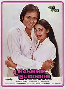 Chashme Buddoor (transl. Far be the evil eye) is a 1981 Indian romantic comedy-buddy film directed by Sai Paranjape and produced by Gul Anand and his sister Jayshree Anand–Makhija. The film stars Farooq Sheikh, Deepti Naval, Rakesh Bedi, Ravi Baswani and Leela Mishra in lead roles. The story revolves around three close friends who fall in love with a girl named Neha. Two of the friends fail to woo her and decide to seek revenge after discovering that their third roommate is dating the girl. A remake version directed by David Dhawan and the original digitally restored film were both released on 5 April 2013. The lyrics written by Indu Jain were composed by Raj Kamal and sung by Yesudas and Hemanti Shukla.