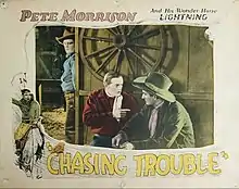 Chasing Trouble is a 1926 American silent Western film directed by Milburn Morante and starring Pete Morrison, Ione Reed and Tom London.[1]
