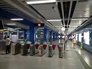Chebei Station (simplified Chinese: 车陂站; traditional Chinese: 車陂站; Cantonese Yale: Chēbēi Jaahm) is a station of Guangzhou Metro Line 4. It is located at the underground of the junction of Chebei Road[1] and Zhongshan Avenue (zh)[2] in Tianhe District.[3] It started operation on 25 September 2010.[4][5]