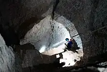 An artisanal miner working in a mine near Chegga