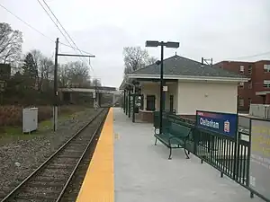 Cheltenham station is a SEPTA Regional Rail station in Cheltenham, Pennsylvania. Located at Old Soldiers Road and Hasbrook Avenue, it serves the Fox Chase Line. The station has a 17-space parking lot.[2] In FY 2013, Cheltenham station had a weekday average of 267 boardings and 392 alightings.[3]