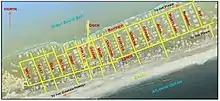Map including the names of the two major walks (Bayview and Lewis), which are generally parallel to the beach, and 16 minor walks (Ivy, Sumner, Maryland, Aeon, Gerard, Greene, Duryea, Doctors, Main, Ocean, Holly, Surf, Beach, Sea, East, and West), which are generally perpendicular to the beach. (South Walk is between Surf and Beach.)