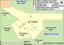 15. 1 2 3 Cherry Springs State Park (PDF) (Map). Pennsylvania Department of Conservation and Natural Resources. January 2008. Archived from the original (PDF) on June 10, 2011. Retrieved March 10, 2009. Note: One spring feeding Hopper House Run is between the Cherry Springs Tavern and the parking lot (photo), while another is between PA Route 44 and West Branch Road, just east of their junction (photo).