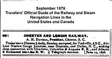 The Chester and Lenoir Narrow Gauge Railroad was a 3 ft (914 mm) narrow-gauge railroad that served South Carolina following the Civil War.