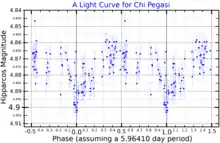A light curve for Chi Pegasi, plotted from Hipparcos data[12]