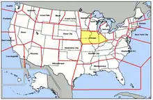 CADS was established by redesignation of the never active 4628th Air Defense Wing at Truax Field, Wisconsin in March 1957[1] with a mission to provide air defense of Illinois, Indiana, most of Iowa and northern Missouri, but did not assume control of former ADC Central Air Defense Force units until 1959.[2] The organization provided command and control over one interceptor and several radar squadrons.