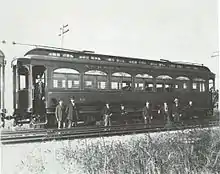 One final problem for the AE&C was finding enough qualified motormen to run the trains. The company found none in the immediate area and had to recruit sixteen men from Dayton, Ohio. Another inspection tour occurred on August 4, from Wheaton to 52nd Avenue. A Niles Car was pulled by a steam locomotive along the track to ensure that none of the curves were too sharp for the intended rolling stock. Original plans called for the third rail to guide the car, but the company experienced many electrical problems along its power lines. By the time the third rail was functioning properly, two hundred and fifty utility poles had burned to the ground due to faulty insulators. A final inspection took place on August 21 from Wheaton to Elmhurst. Although problems with the utility poles were noted, the inspection was otherwise considered a success. For the next three days, engineers tested the line from Aurora to Wheaton so that they would have a familiarity with the track.[14]