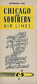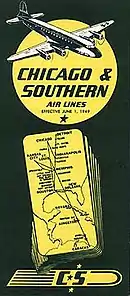 Chicago and Southern Air Lines (C&S) was a United States airline that started life as Pacific Seaboard Air Lines in California and was organized on June 15, 1933. Following the move from California, the airline's headquarters were initially located in St. Louis, Missouri, and were then moved to Memphis, Tennessee, which also served as a hub for the carrier.[1][2] C&S was merged into Delta Air Lines in 1953, thus providing Delta with its first international routes.