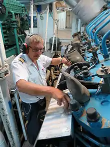 A chief engineer, commonly referred to as "Chief" or "ChEng", is the most senior licensed mariner (engine officer) of an engine department on a ship, typically a merchant ship, and holds overall leadership and the responsibility of that department.[1] Chief engineer's rank is equivalent to the rank of a ship's captain. As a person who holds one of the most senior roles on the ship, they must have excellent communication and leadership skills. They will be expected to regularly work alongside other crew members and external consultants, and most importantly, provide guidance to their team.