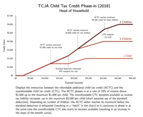 The child tax credit under the Tax Cuts and Jobs Act of 2017. Top plateau would be higher for more children.