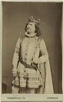 The then Prince of Wales attended one of the performances in the original run and remarked "What a pity that Hervé does not know English! If he came to London, he would have a huge success." This was reported to Hervé who learnt English in a few months and accordingly the piece was mounted in London at the Lyceum Theatre in 1870 in English starring the author and Selina Dolaro.[3] The Prince of Wales attended one of the London performances and enjoyed Hervé's performance of the Chanson du jambon on horseback in the first act so much that he expressed a wish that he could hear it again so Hervé came riding into the second act scene of the throne room, again on horseback, and repeated the number.[3] The operetta had several successful productions in London, including an adaptation by H. B. Farnie at the Empire Theatre in 1884 and was given in New York in 1874, in English.[4] It was also given in various adaptations in Australia, in Berlin and in Vienna in the 19th century.[4] By the beginning of the 20th century however audience taste in operetta had moved away from this style of extravagant zaniness to a more bourgeois kind of work and Chilpéric was only rarely performed.[4]