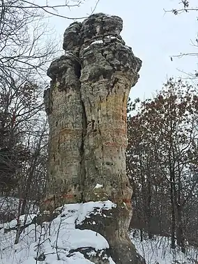 Chimney Rock is a protected scientific and natural area in rural Dakota County, Minnesota. The area features a 30-foot-tall (9.1 m) sandstone rock pillar; the last remaining in the county.