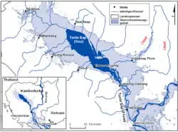 Chinit River (alternates: Stung Chinit or Stoeng Chinith; Khmer: ស្ទឹងជីនិត) is a river of Cambodia. Located in Kampong Thom Province,[1] it is a major tributary of the Tonlé Sap Lake ("Great Lake"), which joins the Tonlé Sap River at the downstream end in the larger Mekong basin. Somewhat unusually the river is looped back into the same river system, which accounts for its length of 264 kilometres (164 mi), leaving Tonlé Sap lake and entering its river again downstream. The prehistoric archaeological site of Samrong Sen is located on the river bank.[1][2] Water resource projects, commencing in 1971 and in 2003, have had various measures of success.[3][4] The river is an important trade route.[5]