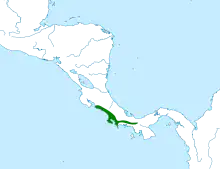 The Chiriqui foliage-gleaner is found on the Pacific slope from Costa Rica south of the dry northwest into western Panama as far as Veraguas Province. It inhabits tropical evergreen forest, mature secondary forest, and coffee plantations from sea level to 1,400 m (4,600 ft).[7]