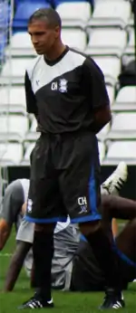 After media speculation linking Hughton with a variety of clubs,[45][46][47] Hughton was appointed manager of Championship club and League Cup holders Birmingham City in June 2011.[48] In the club's first European campaign for 50 years, he led them into the group stages of the UEFA Europa League courtesy of a 3–0 aggregate win against Portuguese side Nacional.[49] During October, Birmingham won four and drew one of their league matches, an achievement for which Hughton was named Championship Manager of the Month.[50] He led Birmingham to the fifth round of the 2011–12 FA Cup, drawing away at Chelsea before losing 2–0 in the replay.[51] Hughton guided the Blues to a fourth-placed finish in the Championship, qualifying for the play-offs,[52] where they lost 3–2 over the two legs of the semi-final against Blackpool.[53]
